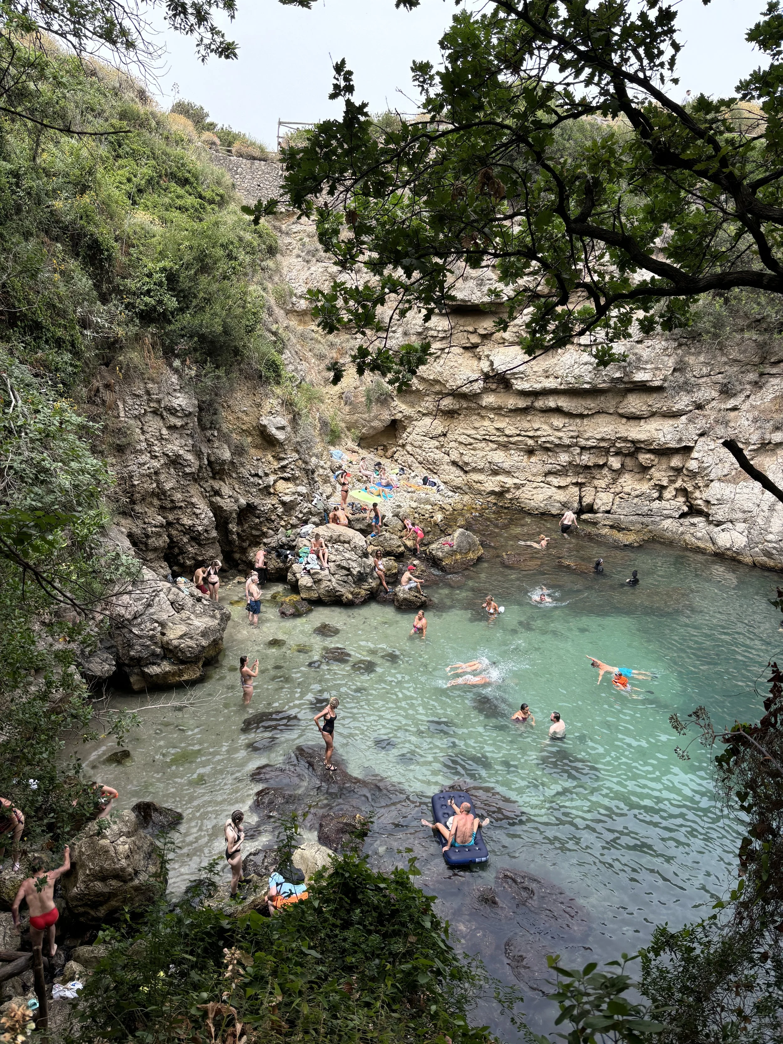 If you find yourself in Sorrento looking to swim outside of the standard beach clubs, you’ve come to the right post. A little over 3 miles away from downtown Sorrento, sits Bagni della Regina Giovanna. It's a natural lagoon formed by a collapsed cave that connects to the sea with a natural archway. It's absolutely beautiful.